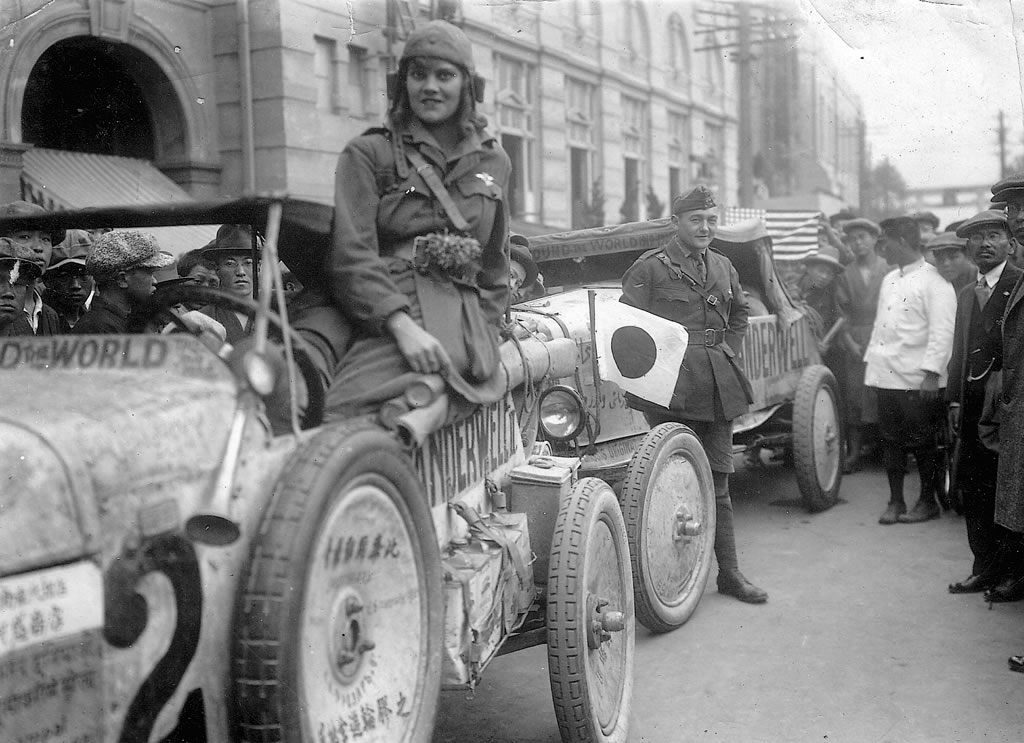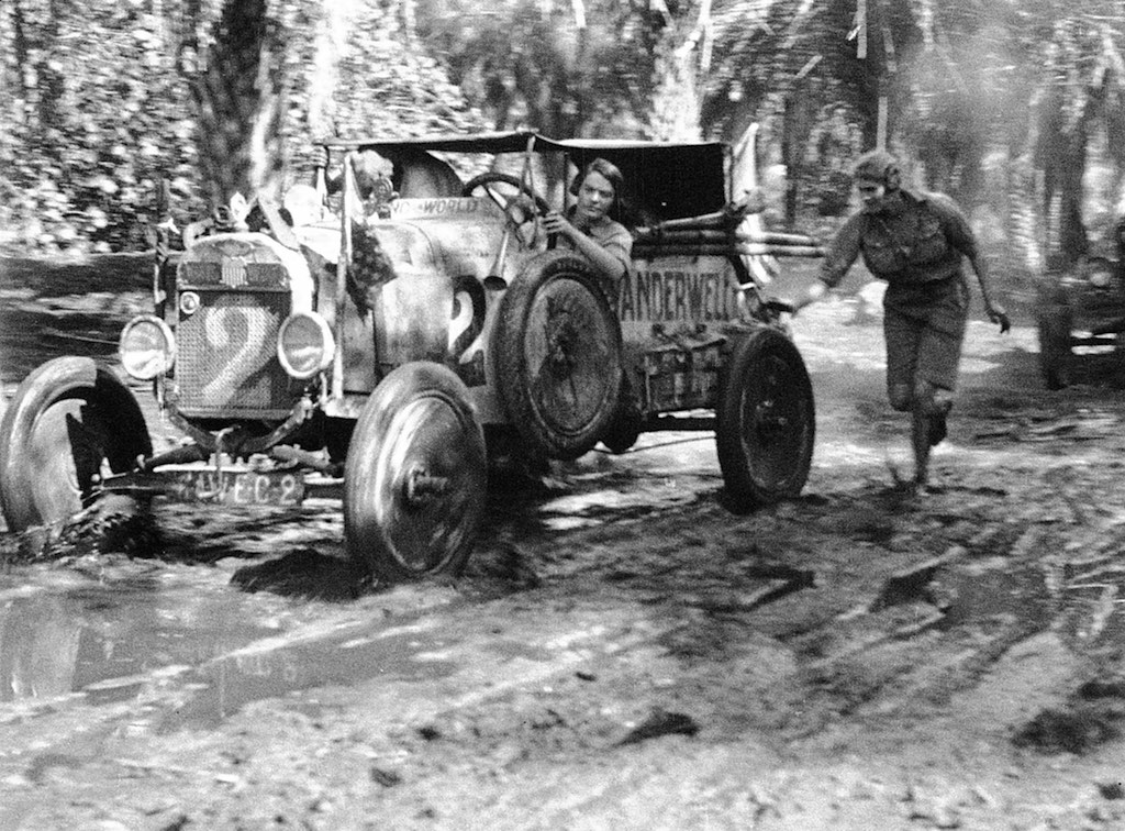 In 1922, with her mother’s permission, the precocious 16-year-old left school in the south of France to answer a newspaper ad seeking a secretary for a round-the-world expedition. She joined the expedition created by self-proclaimed Captain Walter Wanderwell, who immediately put her behind the wheel of a Model T Ford.